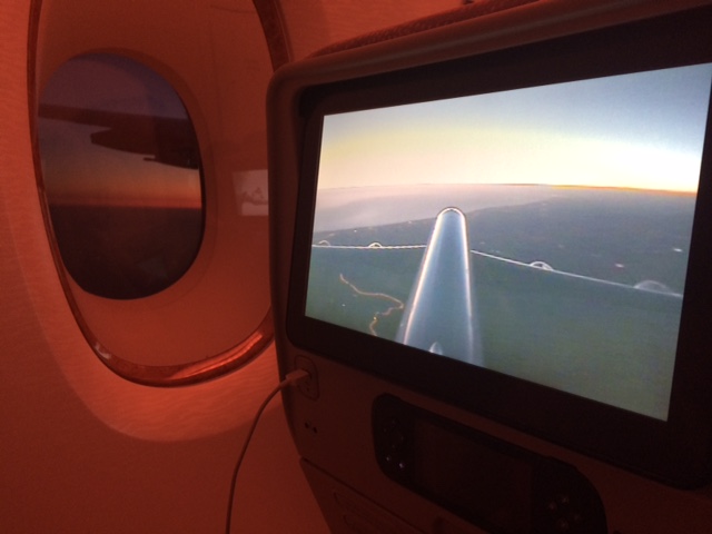 Przez cały lot na ekranie możecie zobaczyć wszelkie dane dotyczące Waszego lotu, takie jak: czas lotu, planowany czas lądowania, a także podgląd na żywo z kamer znajdujących się w kilku częściach samolotu: w Boeingach 777 2 kamery, natomiast w Airbusach A380 – 3 kamery, w tym moja ulubiona, czyli ta umieszczona na „ogonie” samolotu. W przypadku lotów do Dubaju, w systemie rozrywki pokładowej możemy także zobaczyć informacje o przesiadkach. We wszystkich Airbusach A380 i w większości Boeingów 777 jest Wi-Fi, w tym 20MB bezpłatnie (w klasie ekonomicznej).